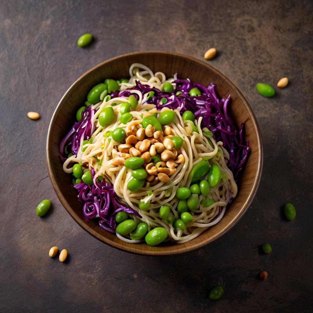 Kold asiatisk-inspireret nudelsalat med en lækker peanutbutterdressing. Fyldt med protein og kostfibre.